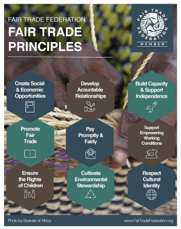 FAIR TRADE is a commitment to a fairer world-one that ensures people who make and grow products have a place to sell them, are fairly paid and whose working conditions are safe.